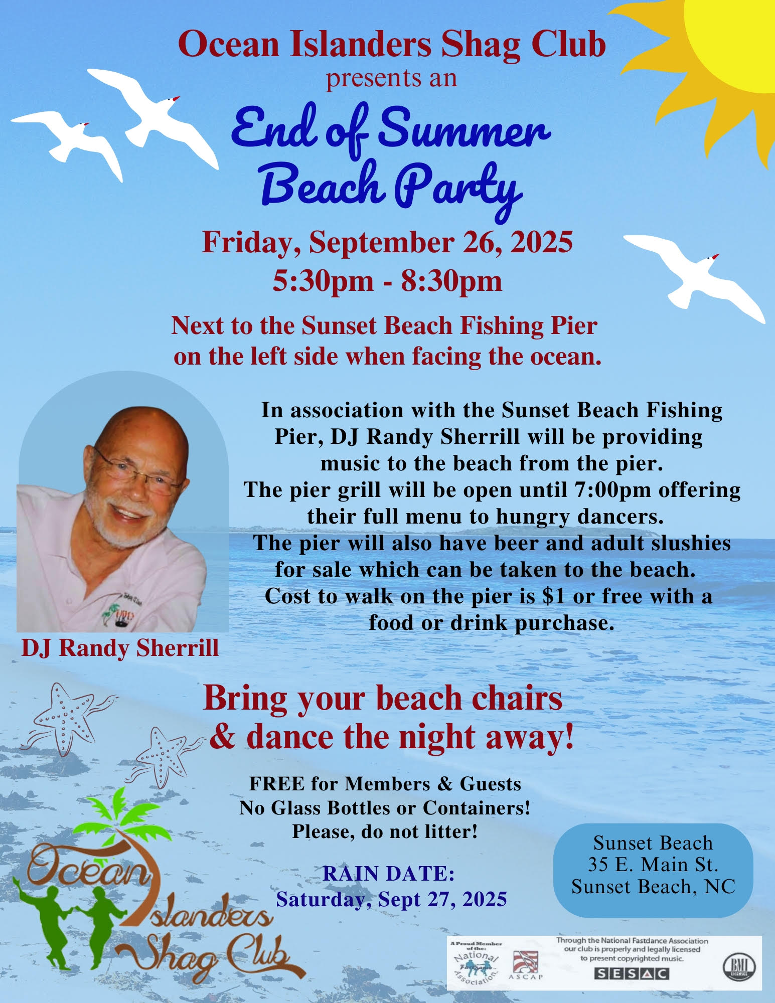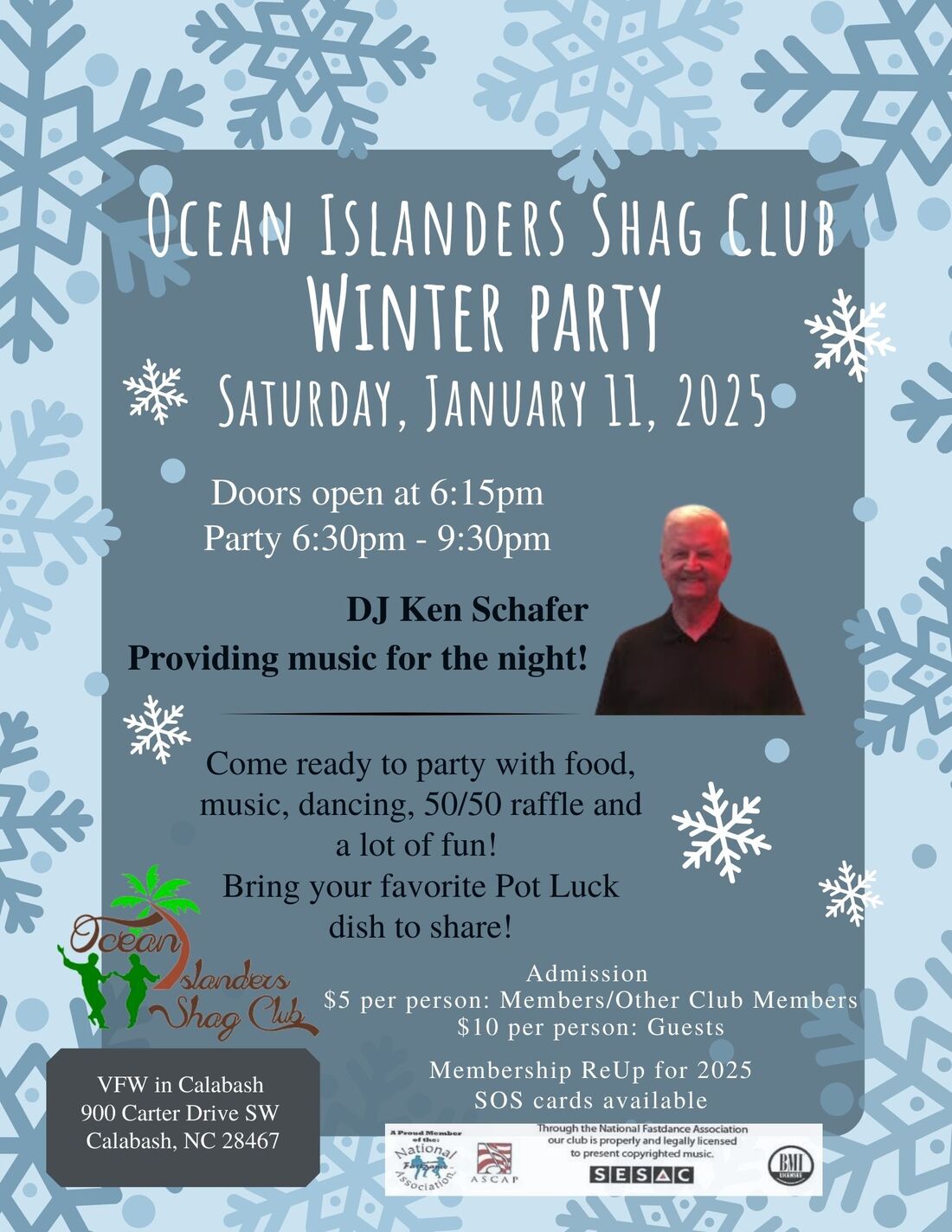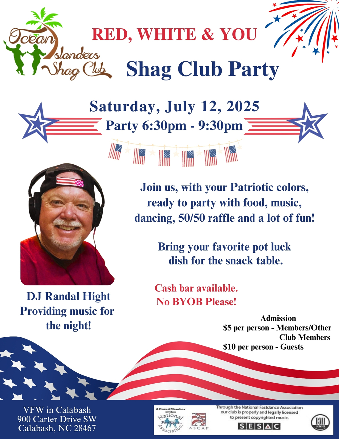 We hold dances on the 2nd Saturday of every month from 6:30-10pm at the VFW (900 Carter Drive SW, Calabash, NC)